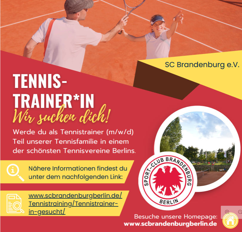 Der Tennisclub Grün-Weiß Nikolassee sucht ab April 2026 eine(n) engagierte(n), motivierte(n), einfühlsame(n) und leistungsorientierte(n) Trainer/-in mit umfangreicher Erfahrung in der Vermittlung des Tennissports von Neueinsteigern und fortgeschrittenen Anfängern aller Altersklassen. Die Tätigkeit umfasst ca. zehn bis 15 Stunden pro Woche und ist langfristig und zukunftsorientiert angelegt. Das Gehalt orientiert sich an den Kriterien Erfahrung, Trainer-Lizenz und Spielstärke. Bewerbungen bitte per E-Mail an: